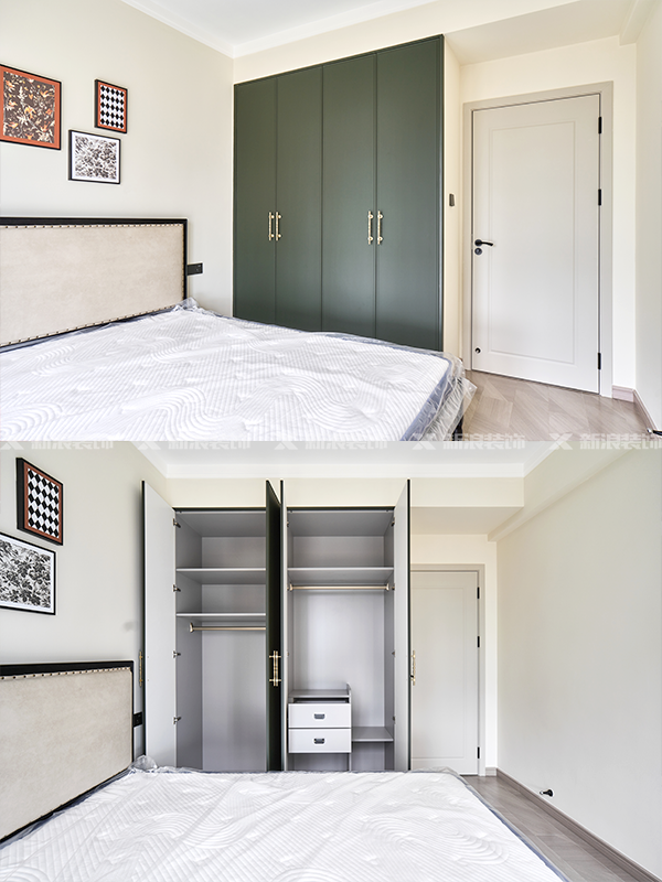 門(mén)墻柜一體,臥室根據(jù)喜好和需求用煙熏尤加利+象牙灰和墨綠色搭配,獨(dú)特又有個(gè)性;三個(gè)臥室都做了充足的衣柜收納,?掛衣區(qū)、疊衣區(qū)、被褥區(qū)、小件區(qū)……整潔有條理!