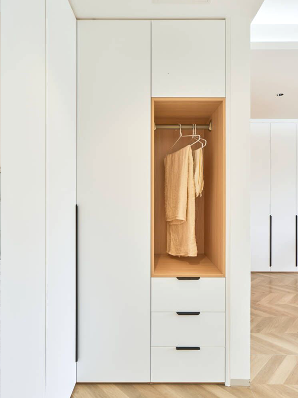 1、衣柜門選整板和純色,百搭又耐看。衣柜的見光板一定要與柜門同色。