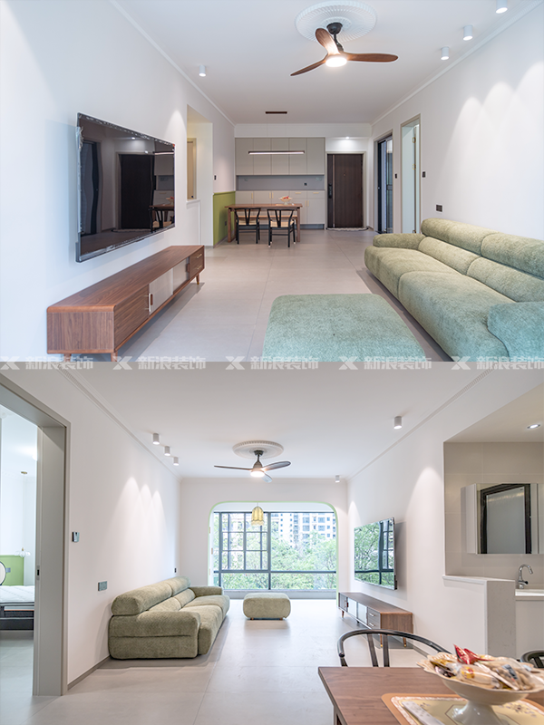 目前軟裝和綠植、擺件布置還沒完全到位,