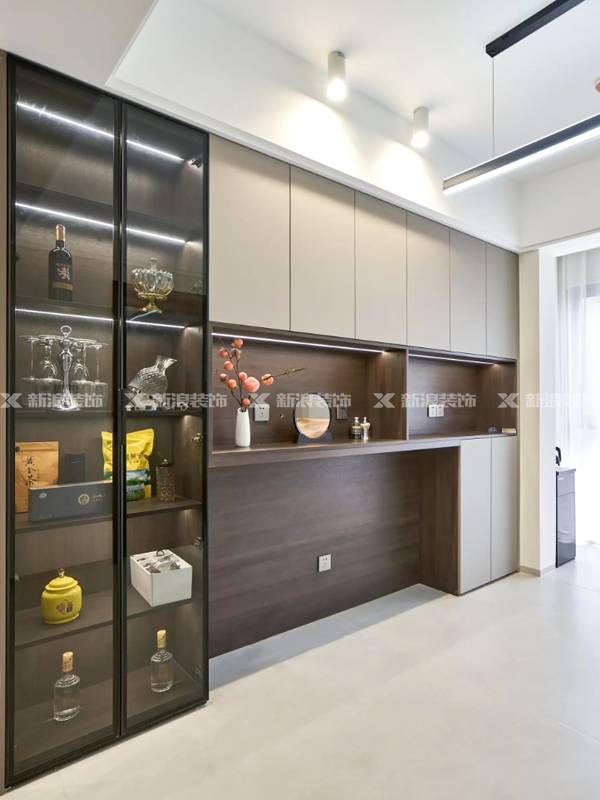 左側(cè)透明玻璃門,用于存放酒杯、餐具、手辦擺設(shè)等,增加層次性