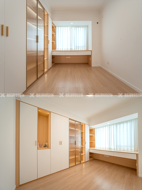 3.多功能房做整面儲(chǔ)物+收納柜,沿窗做長(zhǎng)條懸空書桌,實(shí)用滿分