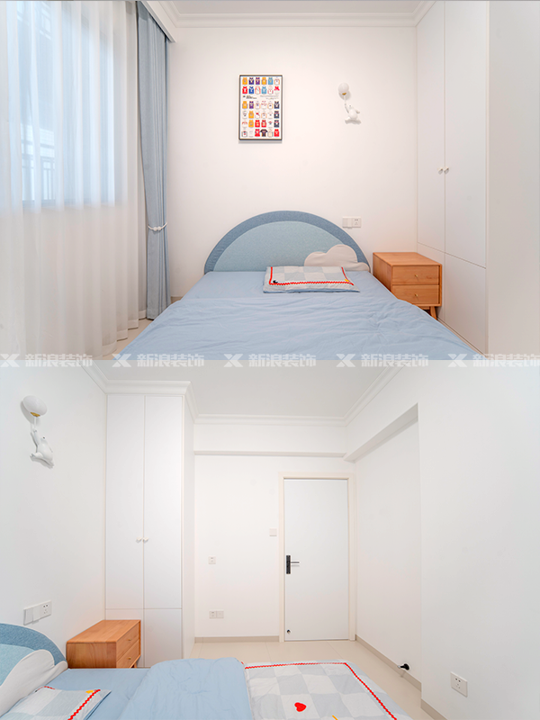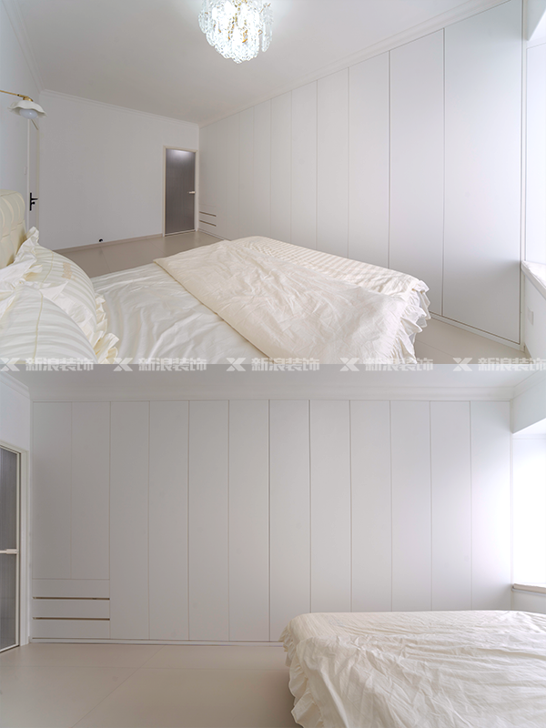 無論是墻面、頂面、還是柜子,該案例整體采用奶白色色系搭配,非常柔和治愈。?