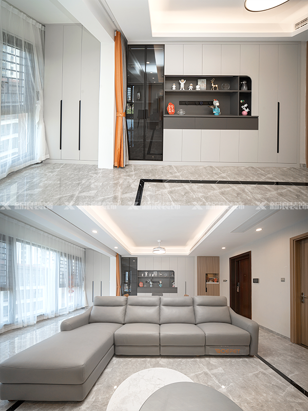 在新浪裝飾,只花2.9W就可搞定148㎡全屋定制11組定制柜。全屋實現了同工廠、同顏色、同材質、同款式一體式設計。麗爾曼頓更高端更高性價比??