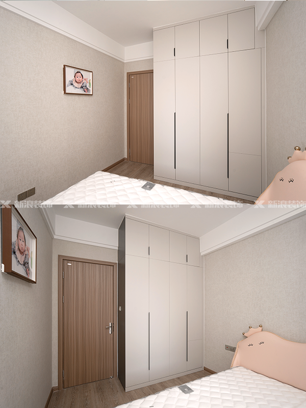 新浪裝飾在瀏陽有四大工廠,新房裝修可以做到全屋定制柜、櫥柜、浴室柜、房門(門頭到頂)、墻、護墻板同工廠、同顏色、同款式、同材質一體化設計。
