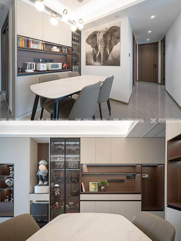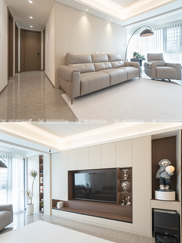 整面電視背景墻+開(kāi)放展示柜,靈動(dòng)不單調(diào)