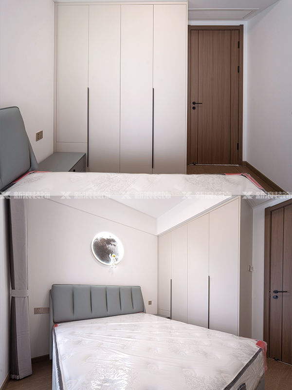 小房間靠墻做書(shū)桌衣柜一體,充分利用空間