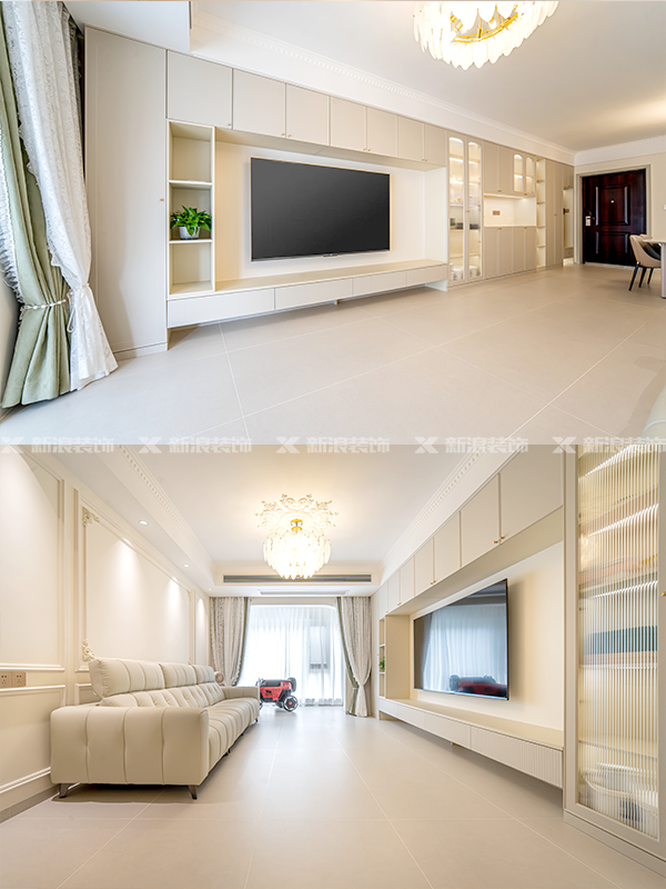 客廳和主臥不吊頂,采用法式吊燈+法式石膏底座,氛圍感超強(qiáng)~