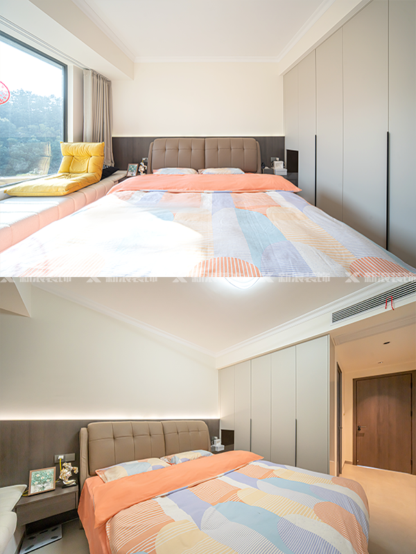 臥室做衣柜書(shū)桌一體化設(shè)計(jì),充分利用空間,滿(mǎn)足收納需求