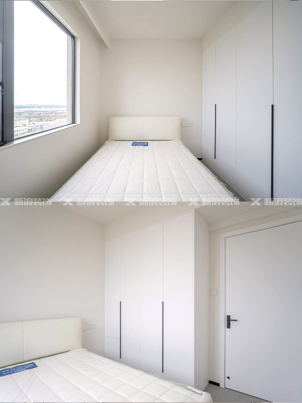 臥室做打造極簡的氛圍,床尾整墻一門到頂衣柜,簡約又高級。