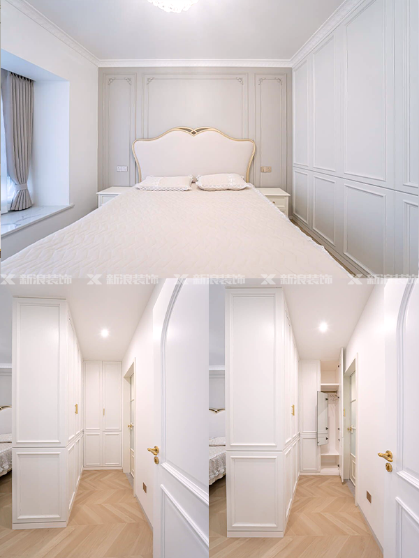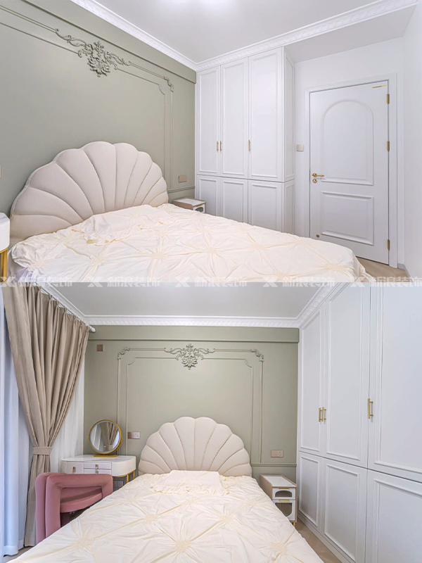 臥室衣柜打破常規(guī),做分段式造型柜門,衣柜做功能分區(qū),掛衣區(qū)、疊放區(qū)、小物品區(qū)等都井井有條。