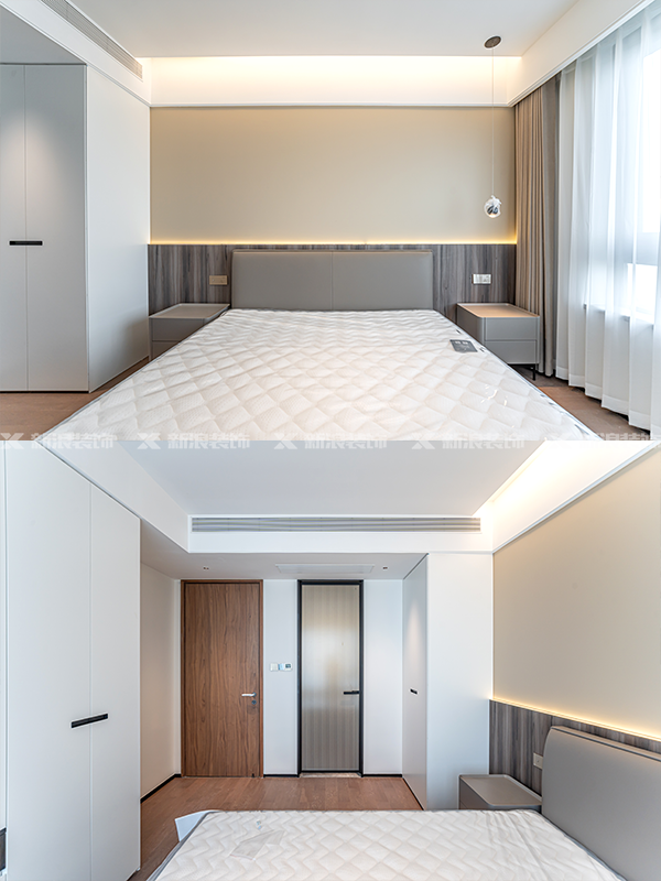 全屋門、墻、柜色調、材質、造型統(tǒng)一,搭配同色軟裝,風格統(tǒng)一不割裂。