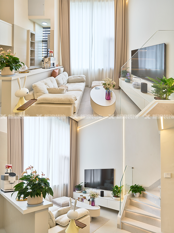 客廳做半搭布局,靠窗挑空,雖然是公寓,但也感覺寬闊不壓抑