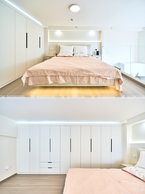臥室用主燈+氛圍線型燈搭配,營造溫馨浪漫的氛圍