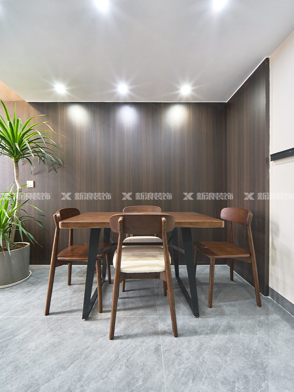 大面積的深色木紋墻板,配合深色的亮面地磚,更顯質(zhì)感