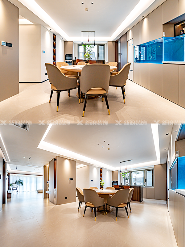 一比一還原實景落地,每個家都值得用心,高級感客餐廳一體設計,常德裝修,長沙裝修,新浪裝飾,麗爾曼頓,靠譜裝修公司,意式輕奢,門墻柜一體化