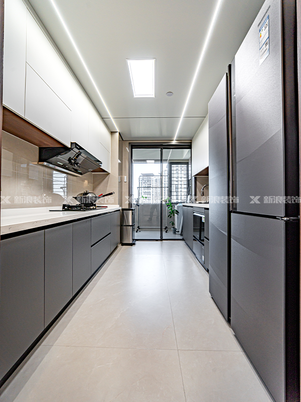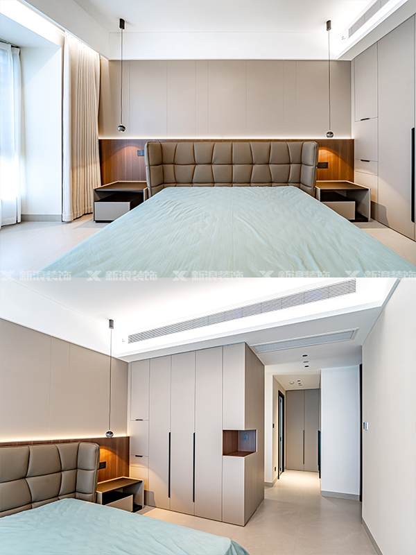 全房門墻柜一體,整體色調統一和諧,搭配現代風格軟裝家具,耐看又耐用。