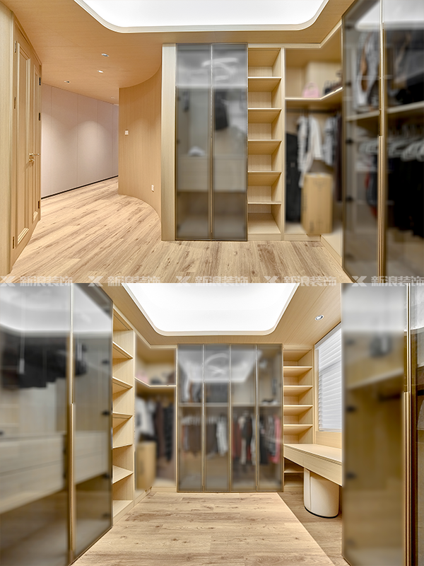 衣帽間做全開放式設計,集收納與梳妝為一體的多功能區,每一處都體現出業主優雅的生活品質。