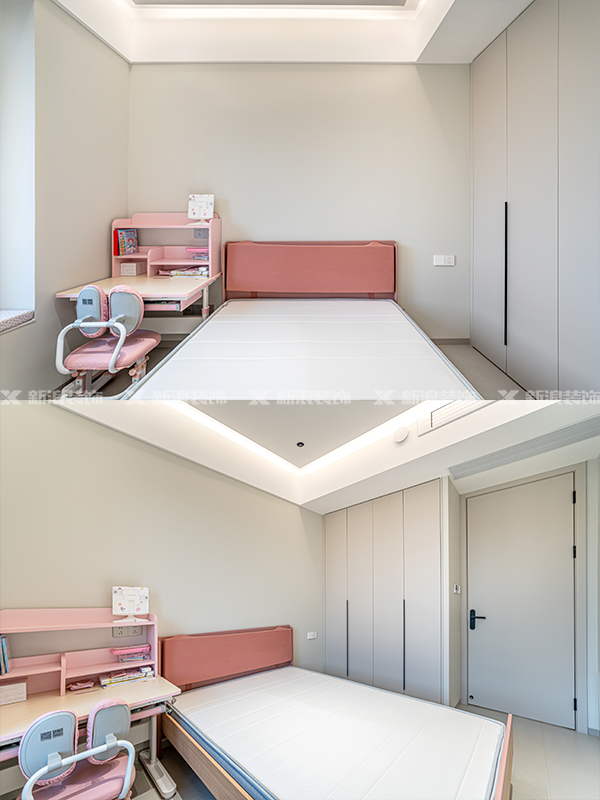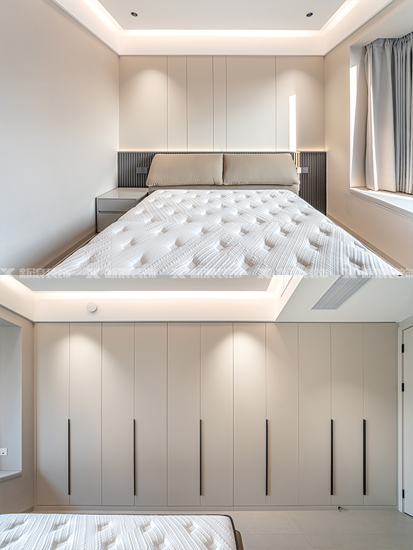 全房無主燈設計,將現代輕奢精髓發揮極致。點光源+線性燈帶搭配,照明均勻而充足,浪漫溫馨。