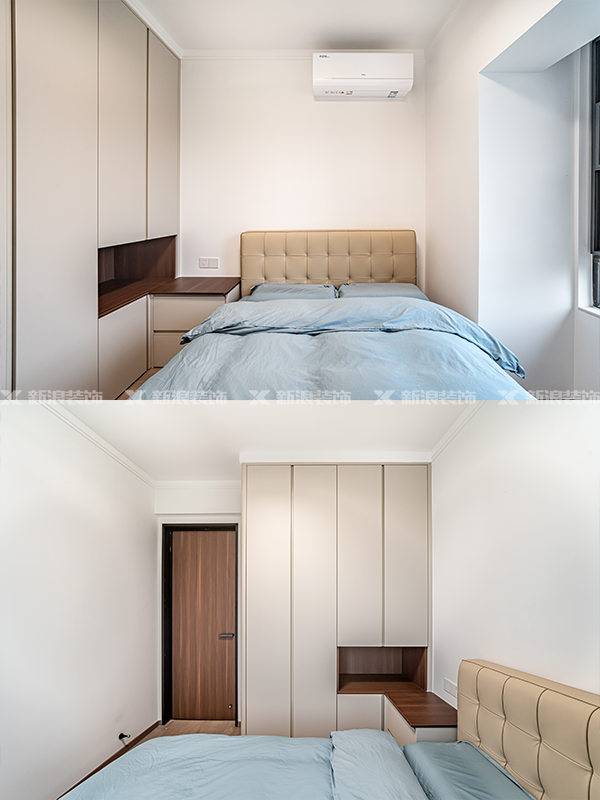 圓弧角定制、通體型材拉手一門到頂,使得空間柔和、不怕磕碰。