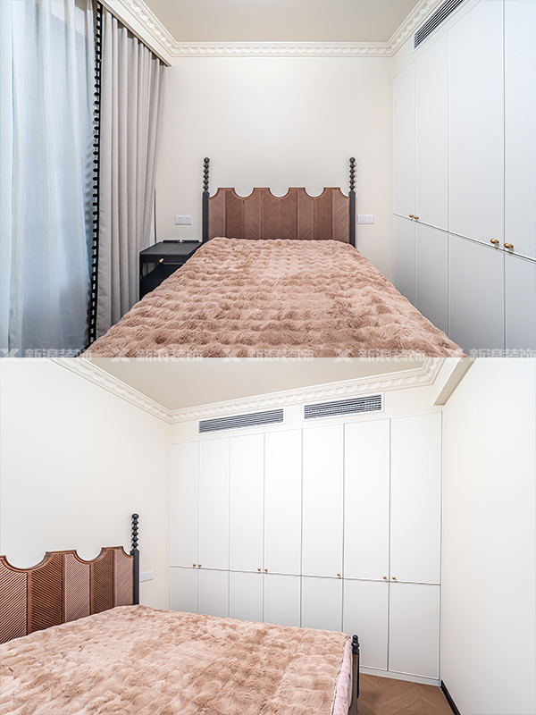 法式復古風的造型柜門溫馨浪漫, 整體空間既不沉悶又更有層次感。