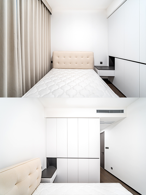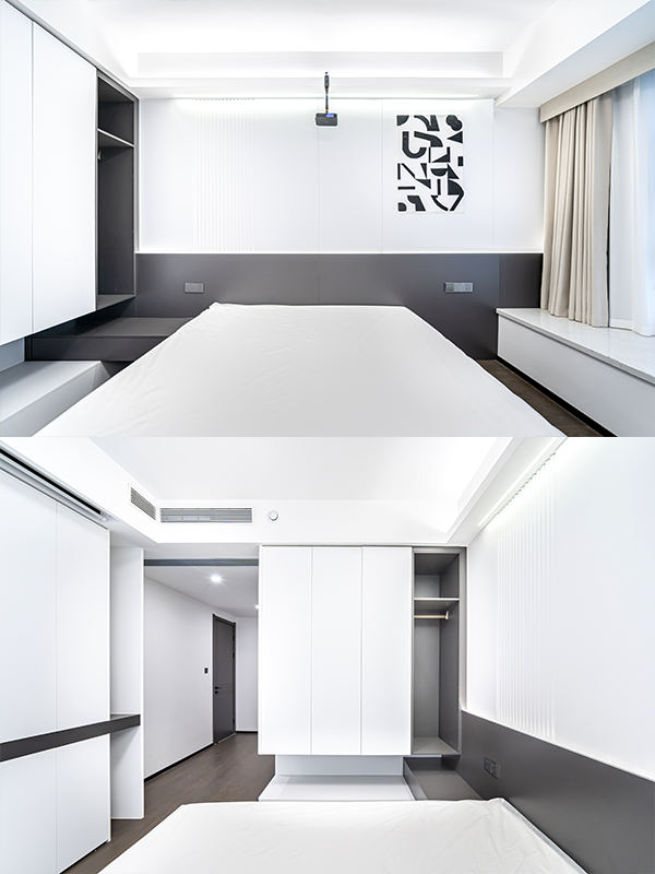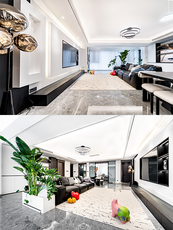 精裝交付,原有的簡約硬裝搭配極簡黑白定制和軟裝,干凈利落