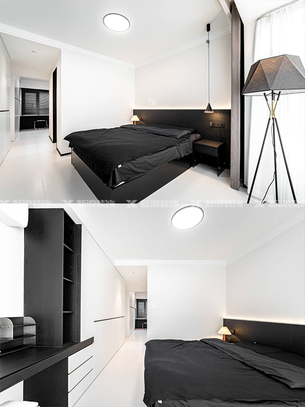 搭配簡約有質感的黑白兩色軟裝,空間靈動不壓抑。