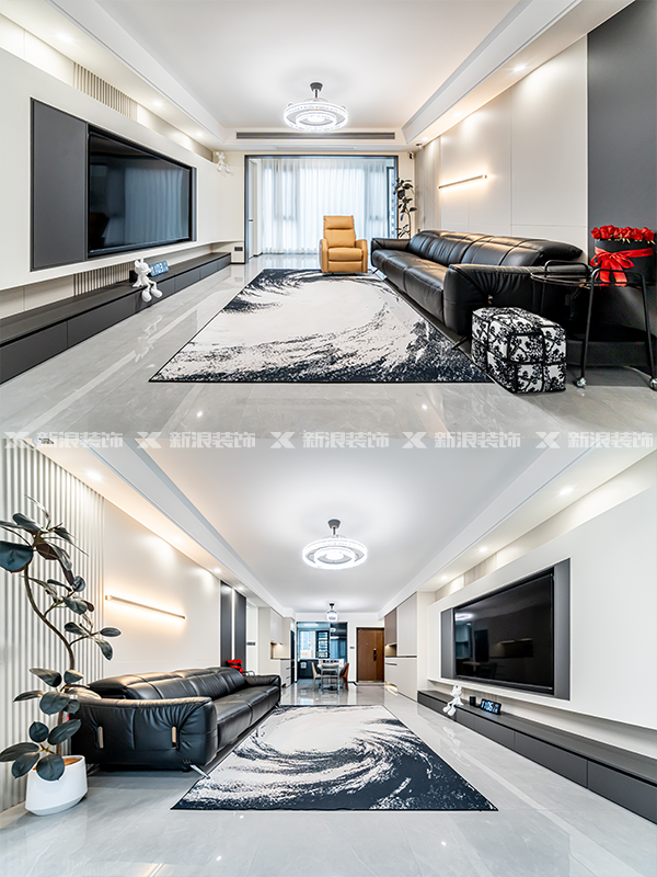 新浪裝飾,長沙裝修.常德裝修.現(xiàn)代風(fēng)裝修設(shè)計.實景落地.裝修案例.客餐廳布局.完工實景.麗爾曼頓.毛坯裝修