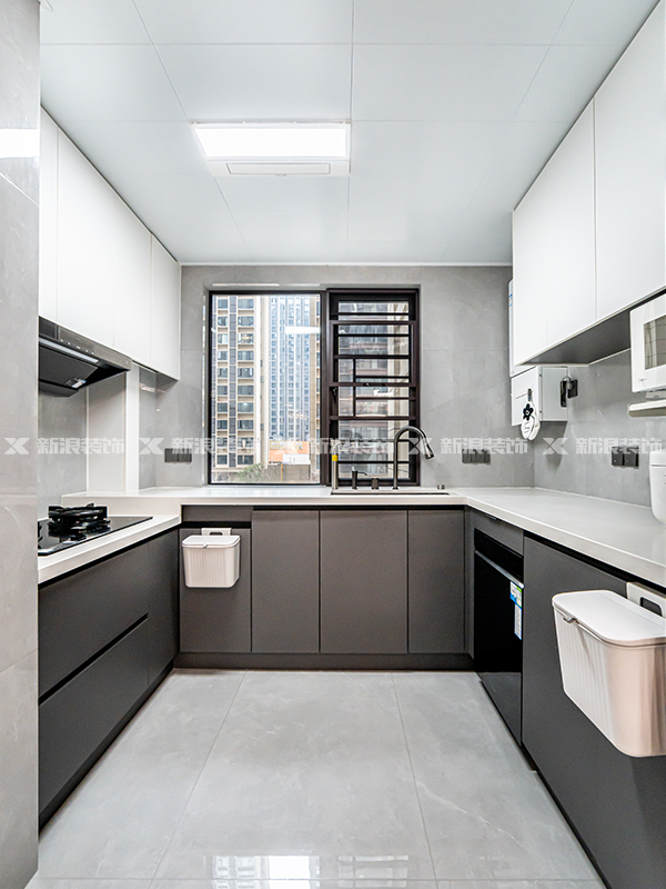 整體配色以黑白為主,搭配淺灰和淺棕色做局部點綴,驅(qū)散黑白兩色帶來的冷意,給家增添溫馨。