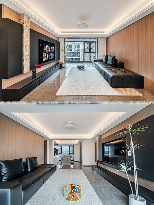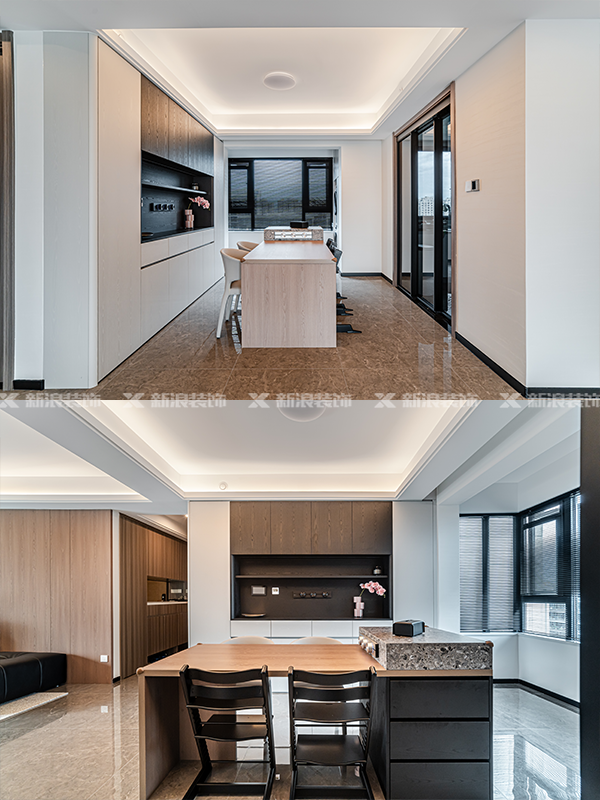整體色調以意式簡約橡木棕+黑為主,設計簡潔利落,非常有質感。